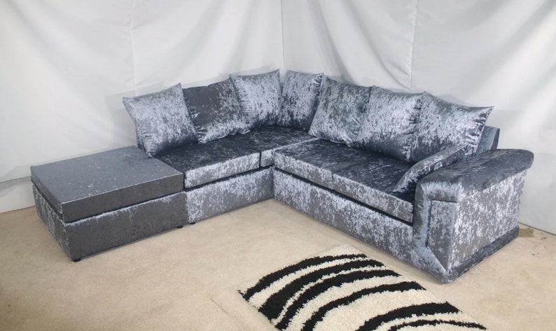 Dino Crushed Velvet Silver Lh Rh Corner Sofa Etsy