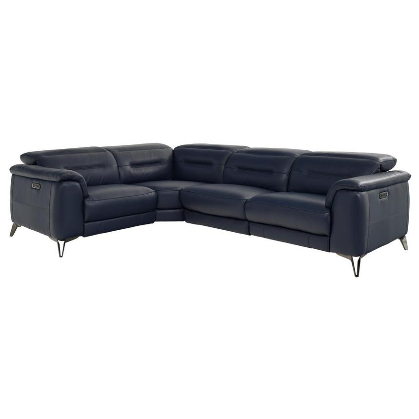 Anabel Blue Leather Power Reclining Sectional El Dorado Furniture