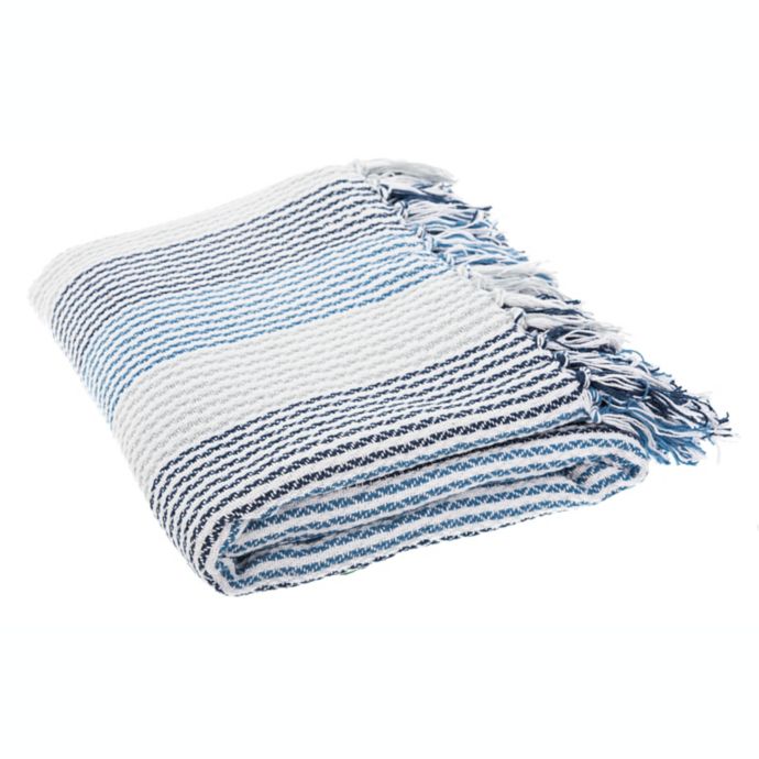 Safavieh Brenton Fringe Throw Blanket In Blue White Bed Bath