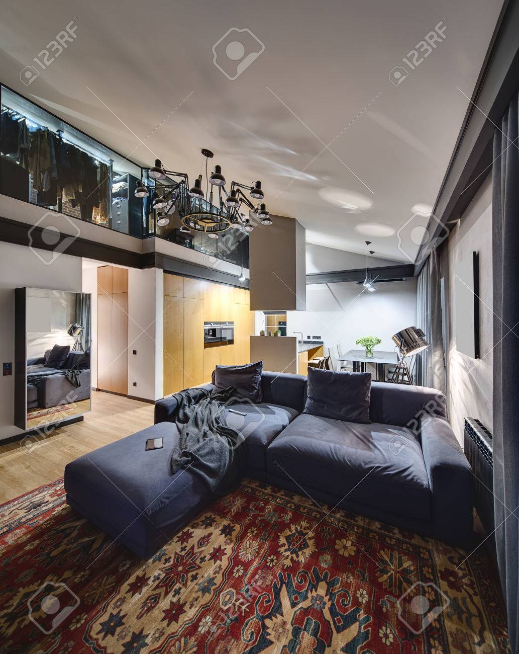 Luminous Interior With Parquet With Red Carpet On The Floor