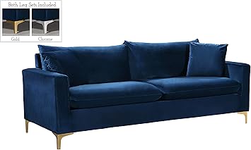 Navy Blue Plush Upholstered Sofa