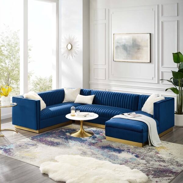 Aria Blue Velvet Sectional Sofa Chairish