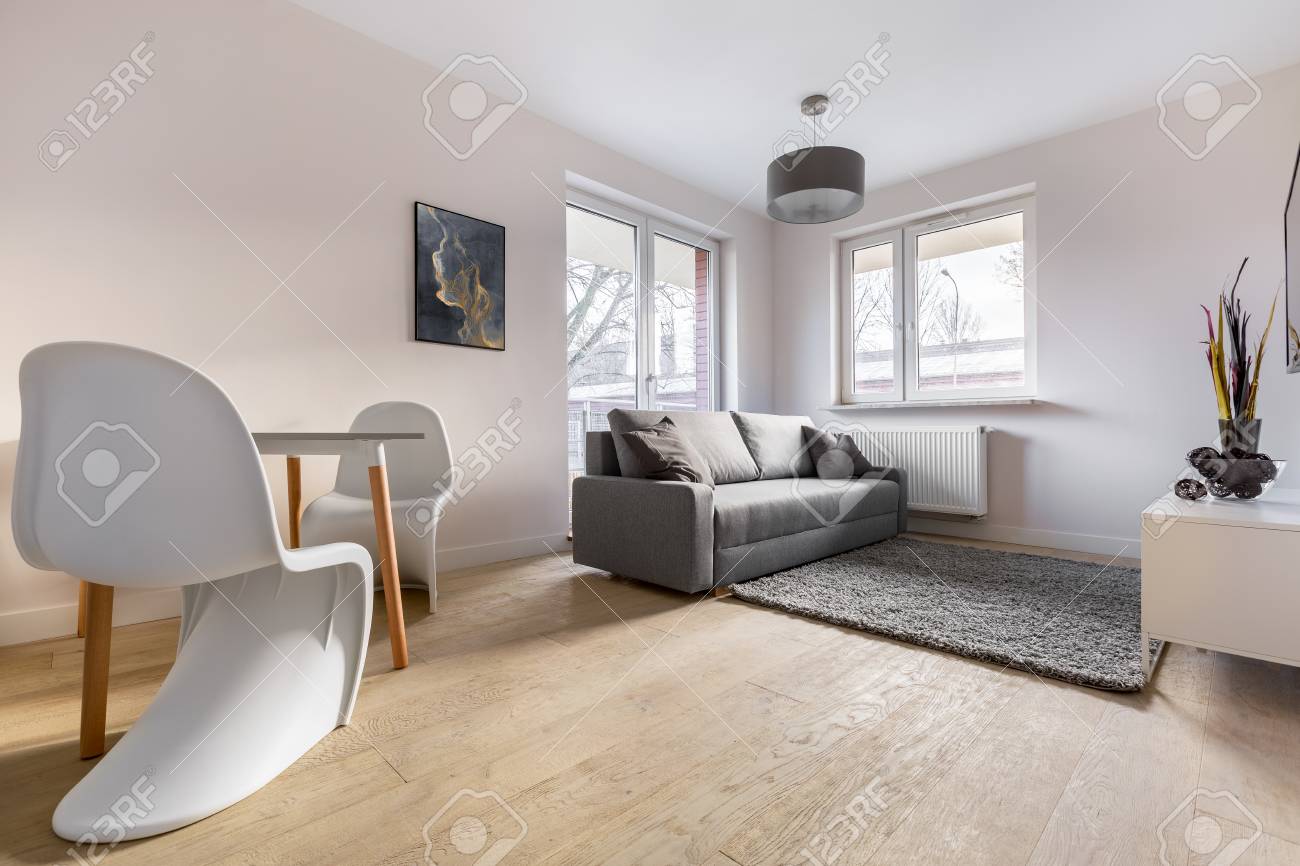 Contemporary Apartment With Beautiful Chairs Table And Sofa Stock