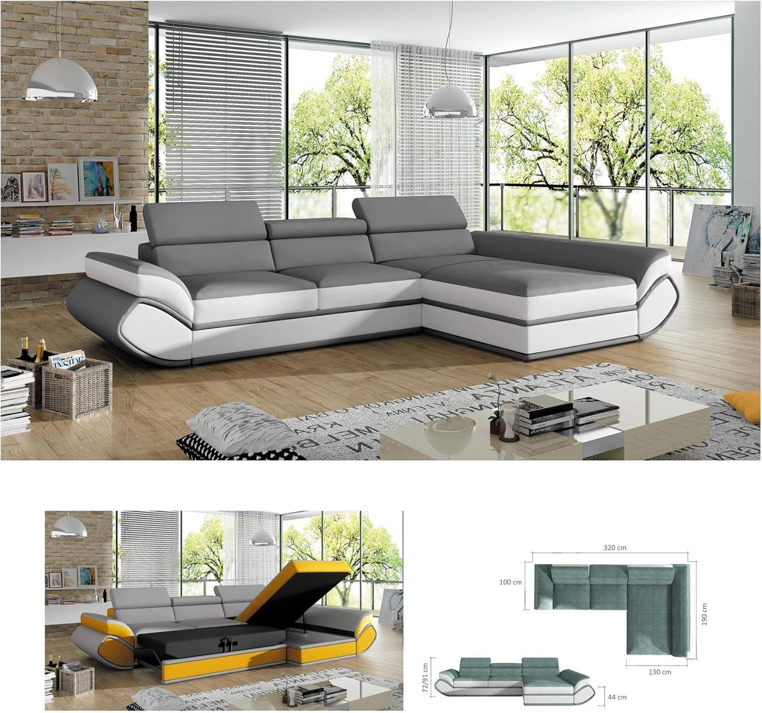 Bmf Genesis Mini Grey White Modern Corner Sofa Bed Storage Faux