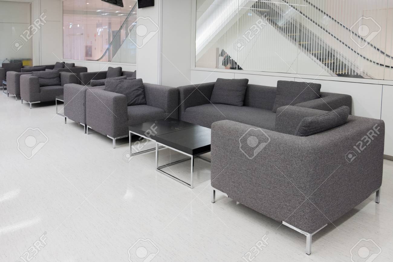 Dark Grey Fabric Sofa In Waiting Room Or Contemporary Office