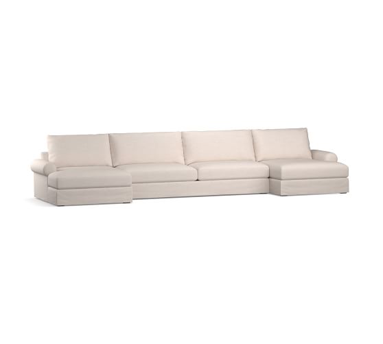 Canyon Roll Arm Slipcovered U Shaped Double Chaise Sectional