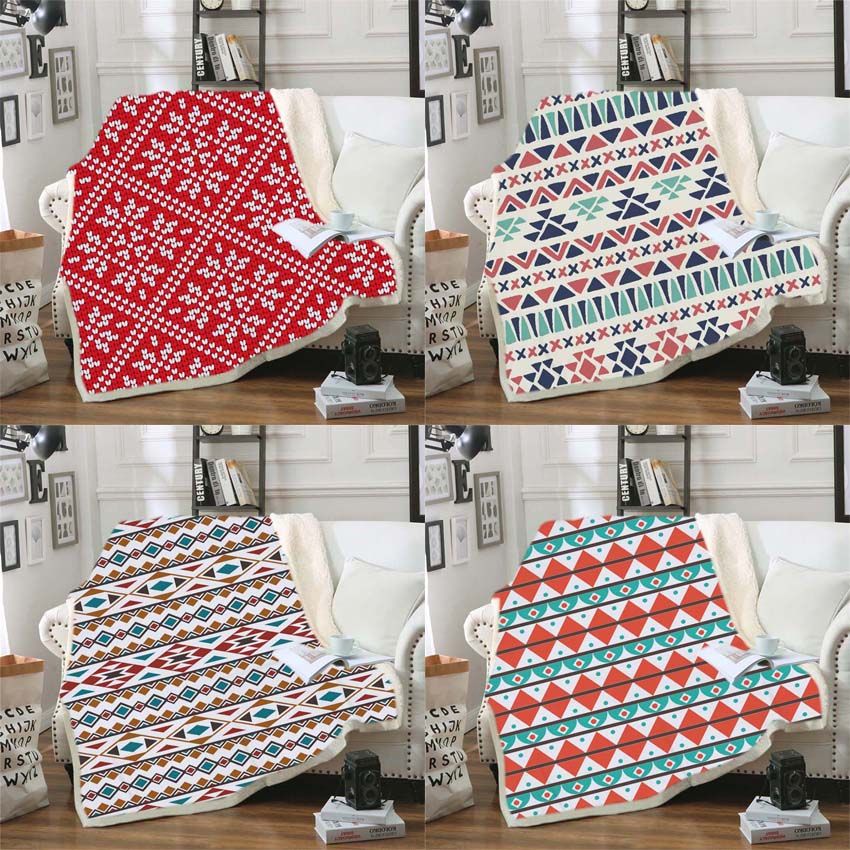 Geometric Square Soft Fluffy Striped Blankets Coral Fleece Fabric