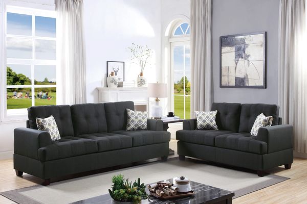 F7597 2 Pcs Black Sofa Set By Poundex Bazaar Furniture