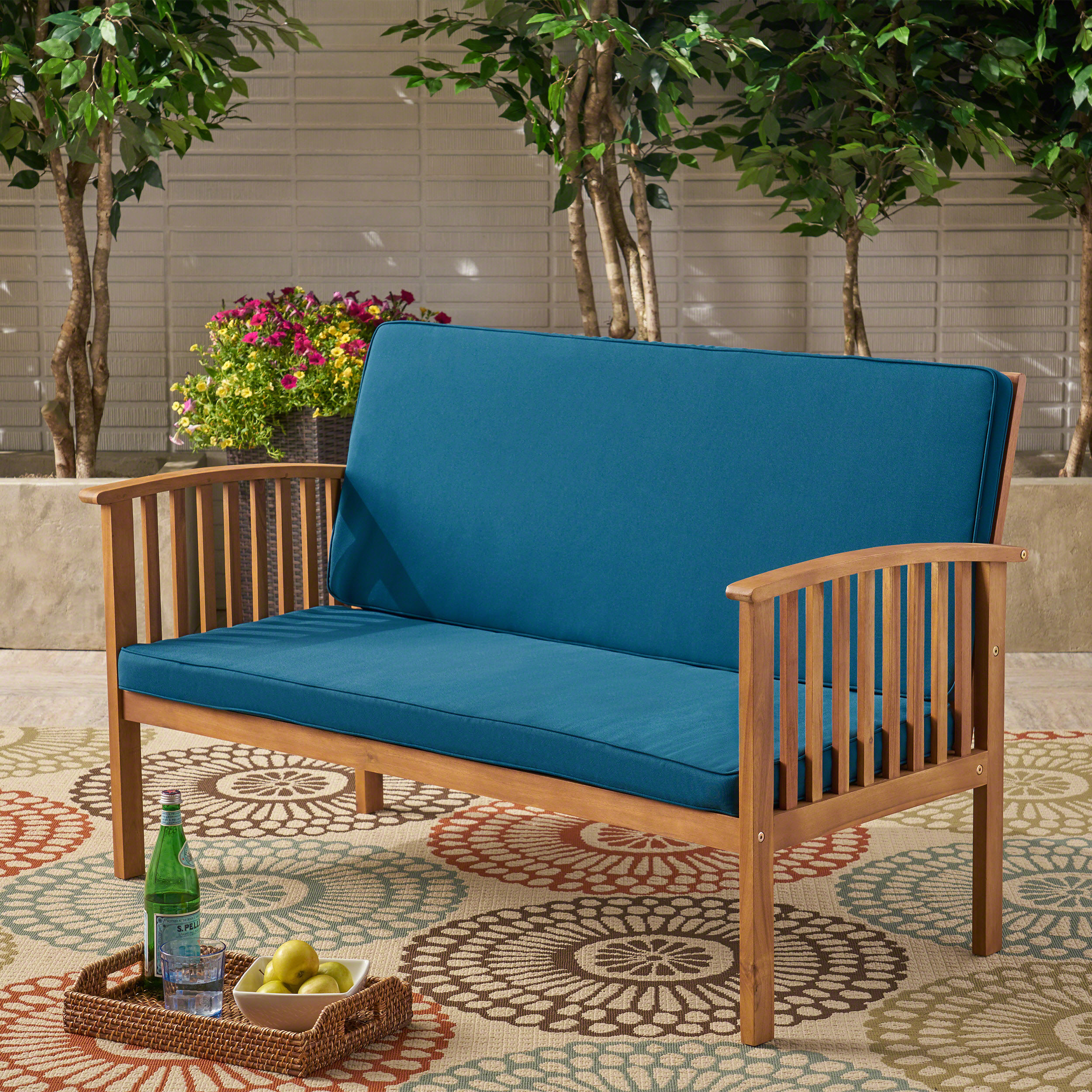Safira Outdoor Acacia Wood Loveseat With Cushions Reviews