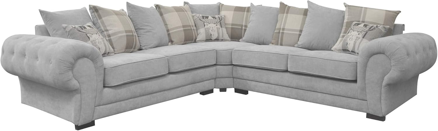 Corner Sofa Verona Fabric Grey Brown Cream Designer Scatter