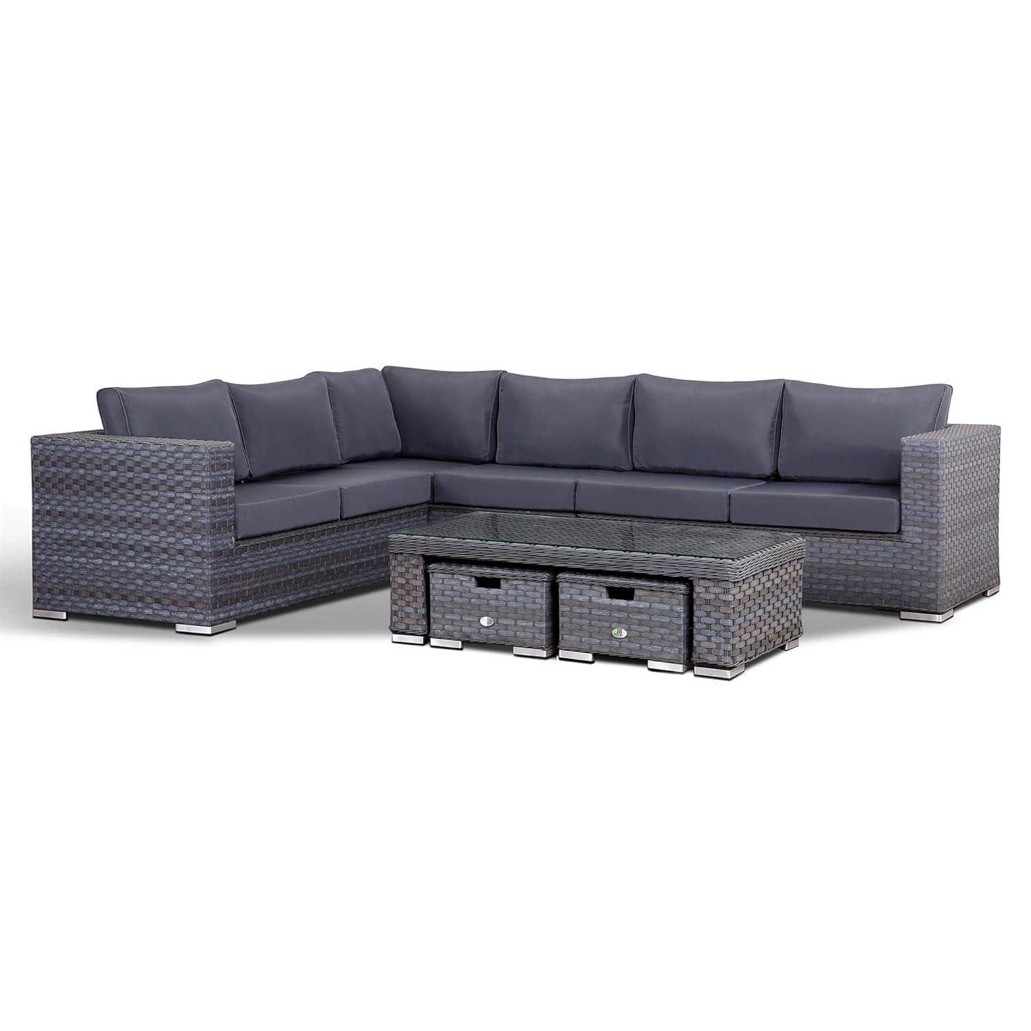 Mauritius Corner Sofa Dining Table Grey Rattan Garden Set