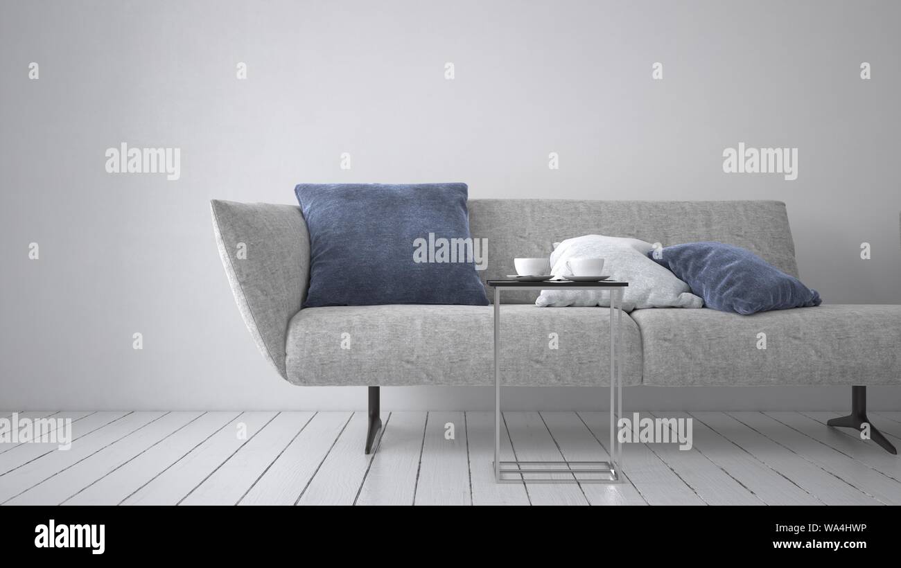 Modern Upholstered Grey Couch Or Day Bed With Comfy Cushion And