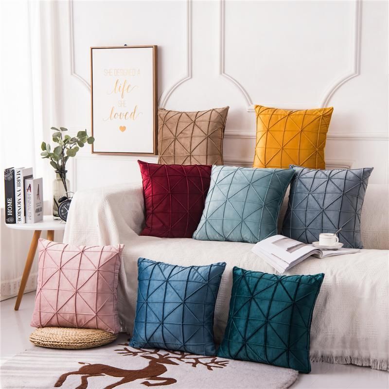 Solid Color Soft Velvet Cushion Cover Geometric Decor Pillowcase