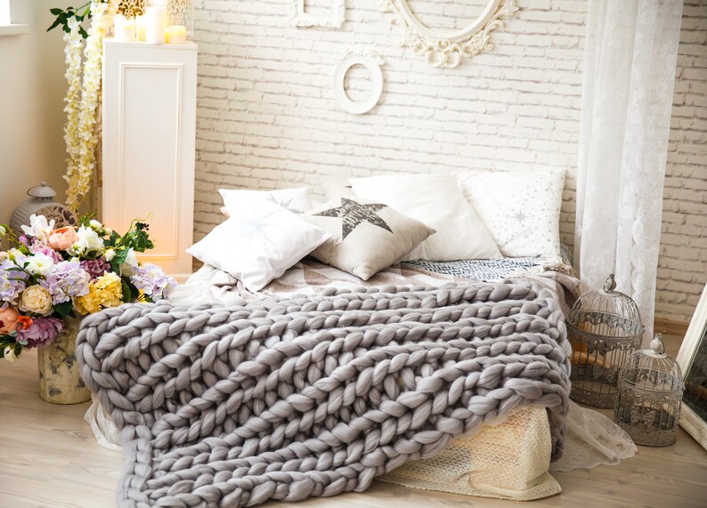 Gray Super Chunky Knitted Throw Blankets Grey Extra Large Etsy