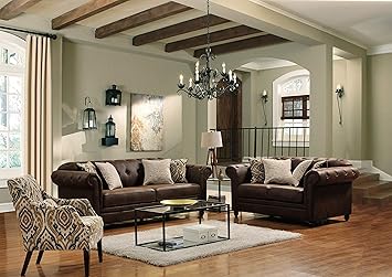 Luxury Traditional Living Room Brown Bonded Leather Sofa Couch Set
