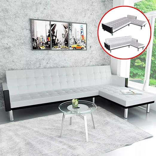 Amazon Com L Shaped Sofa Bed Artificial Leather White And Black
