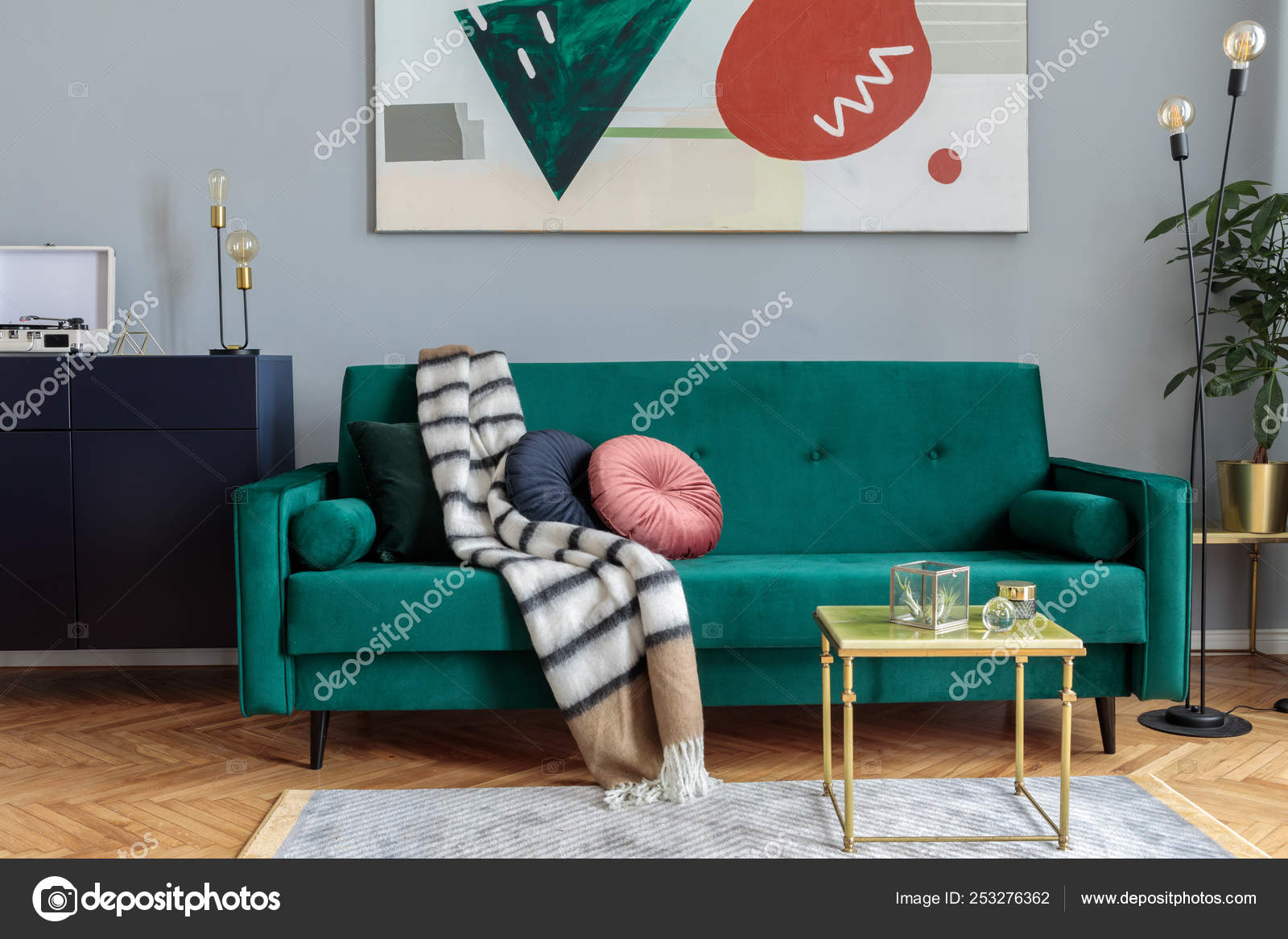 Luxury Stylish Interior Green Velvet Design Sofa Coffee Table Lamp