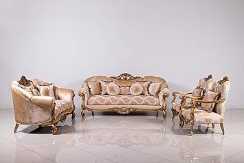 Amazon Com European Furniture 3 Pieces Golden Knights Luxury Sofa
