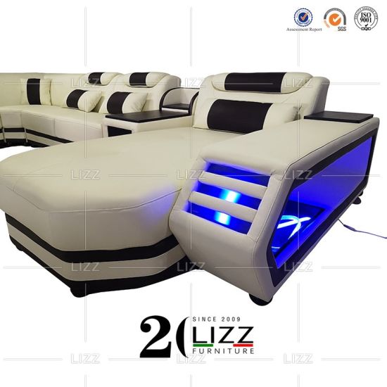 Luxury Sectional Sofa Columbia U Shape With Led Genuine Leather