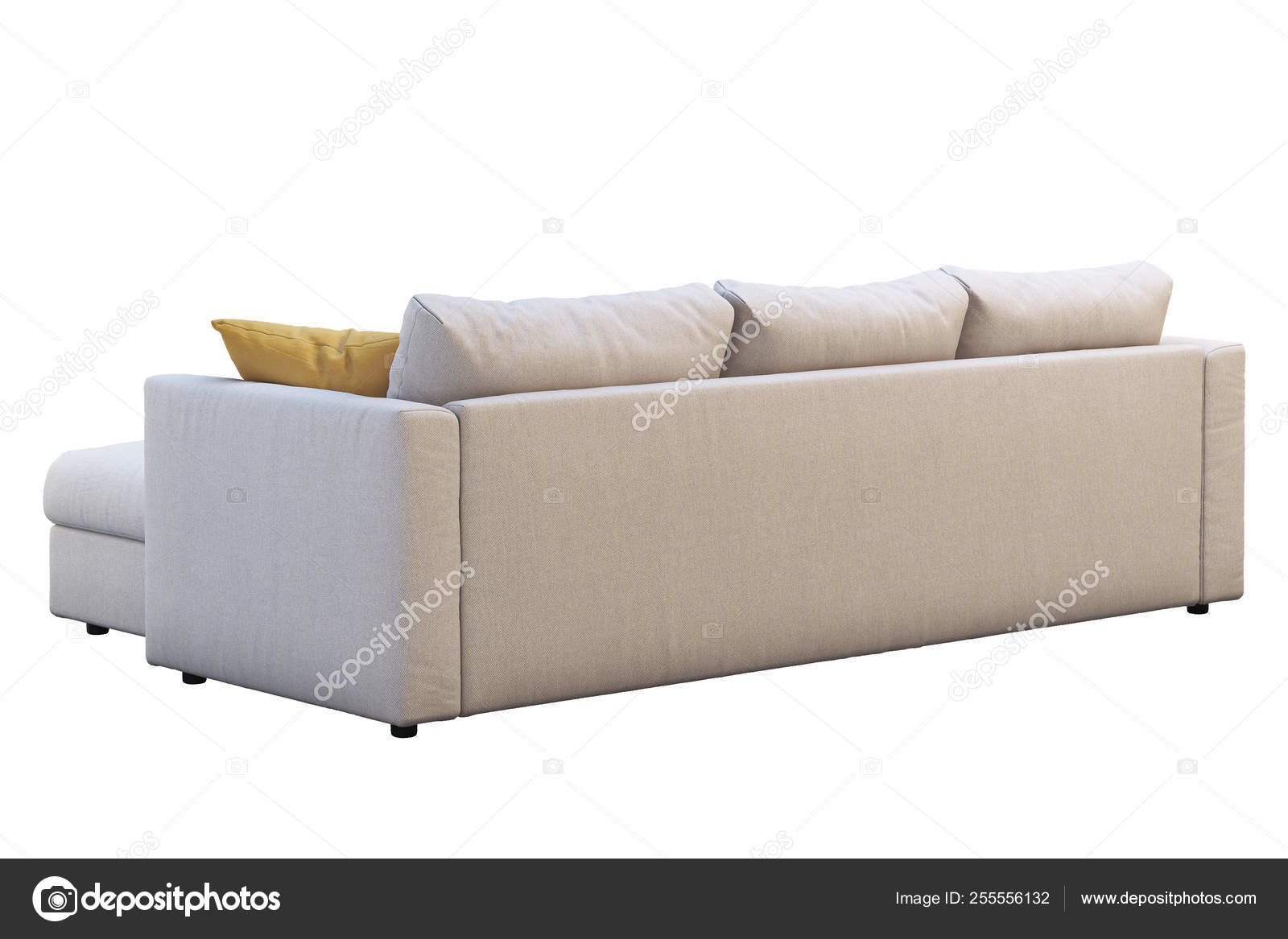 Modern Beige Fabric Sofa With Colored Pillows 3d Render Stock
