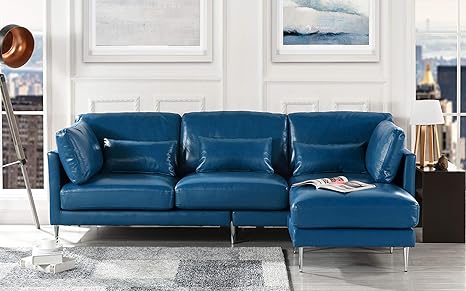 Modern Leather Sectional Sofa L Shape Couch Navy Blue Amazon