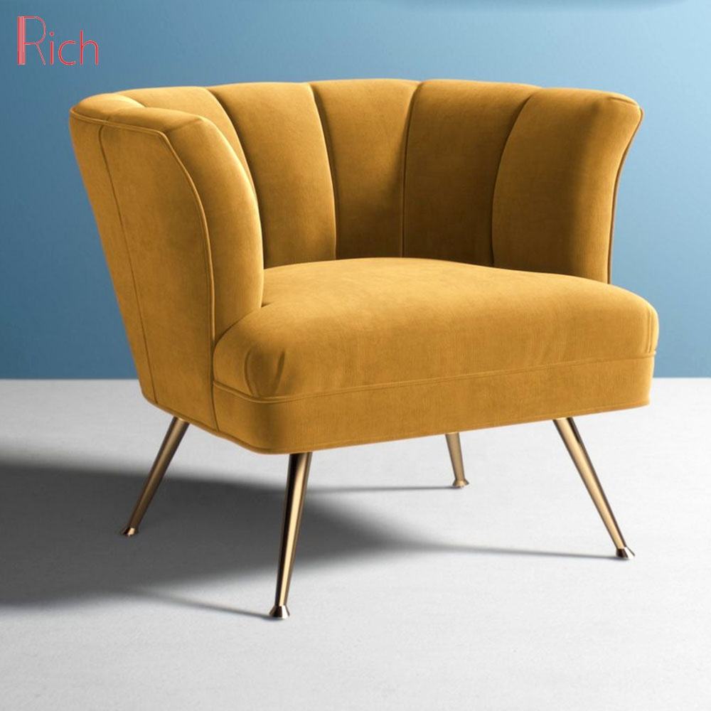 Living Room Yellow Fabric Single Couch Metal Polished Gold Legs