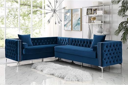 Amazon Com Giovanni Velvet Left Facing Corner Sectional Navy 120