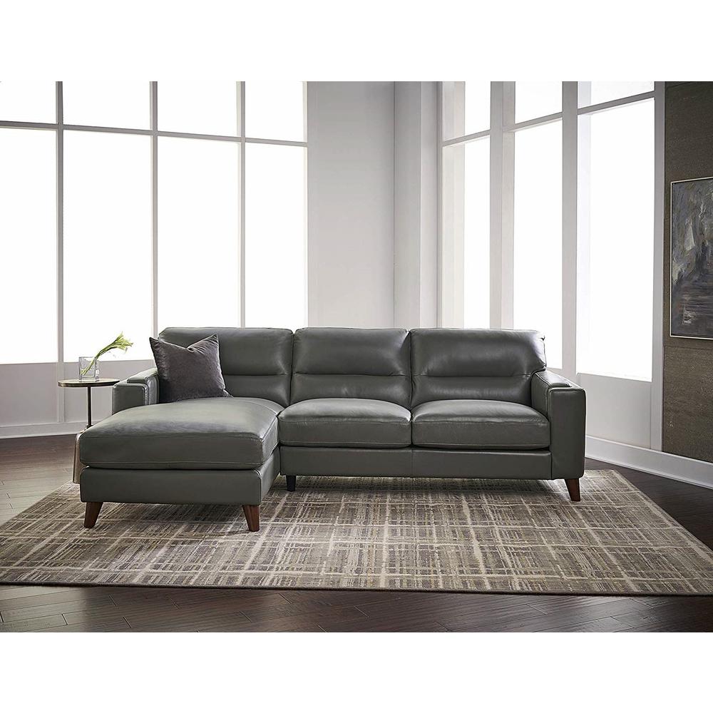 Hydeline Elm Silver Gray 100 Leather Sectional Sofa Right Chaise
