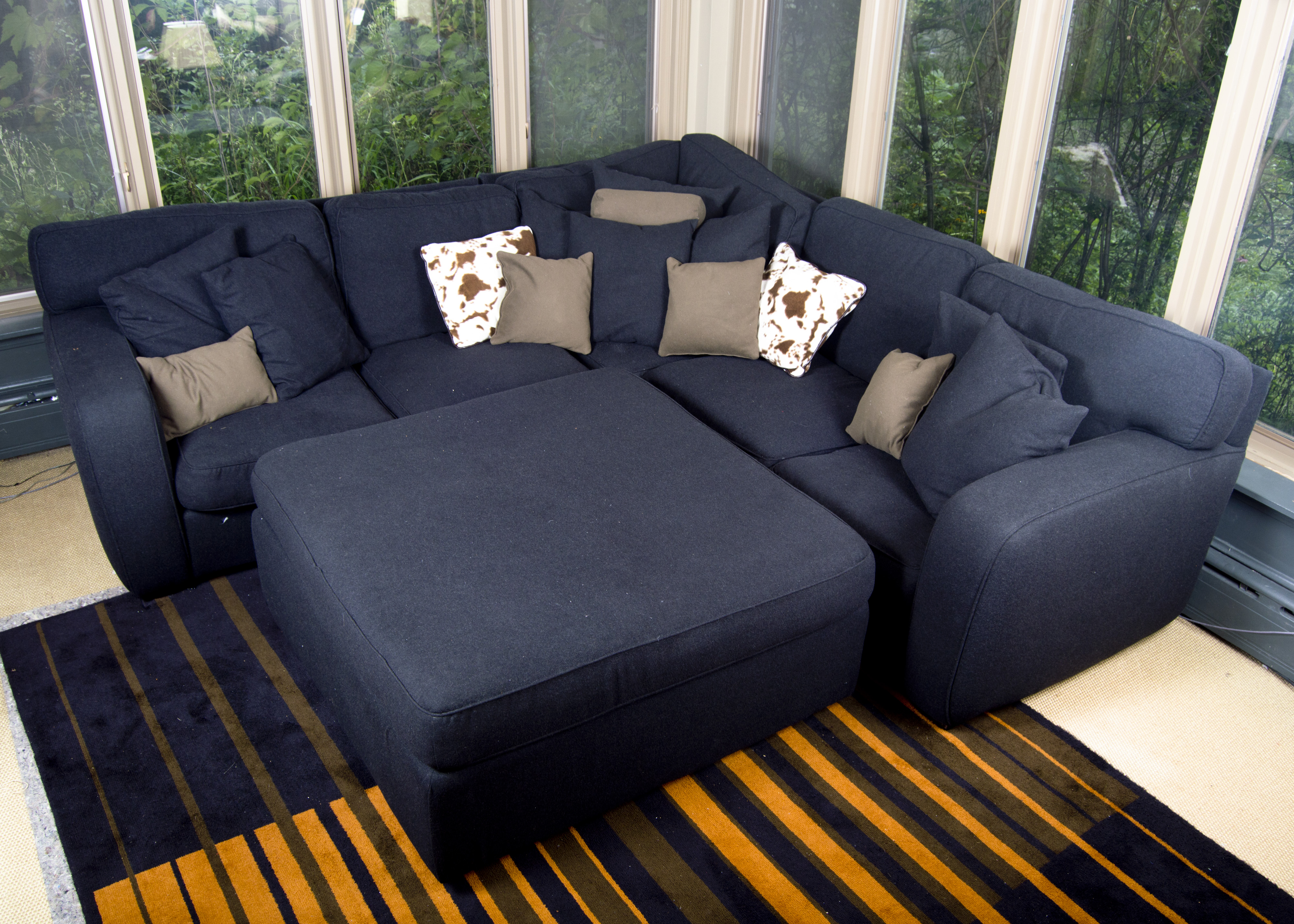 Black Felted Wool Small Sectional Sofa With Ottoman Ebth