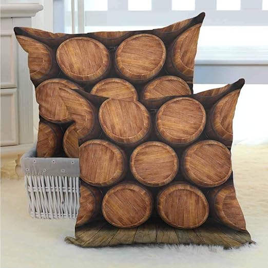 Amazon Com Polyester Pillowcase Wine Wall Of Wooden Barrels Wine Stack Storage Gallon Antique Vintage Container Rustic Design Brown Microfiber Sofa Cushion Cover Bedroom Car Decoration W18 X L18 Inch X 2 Home