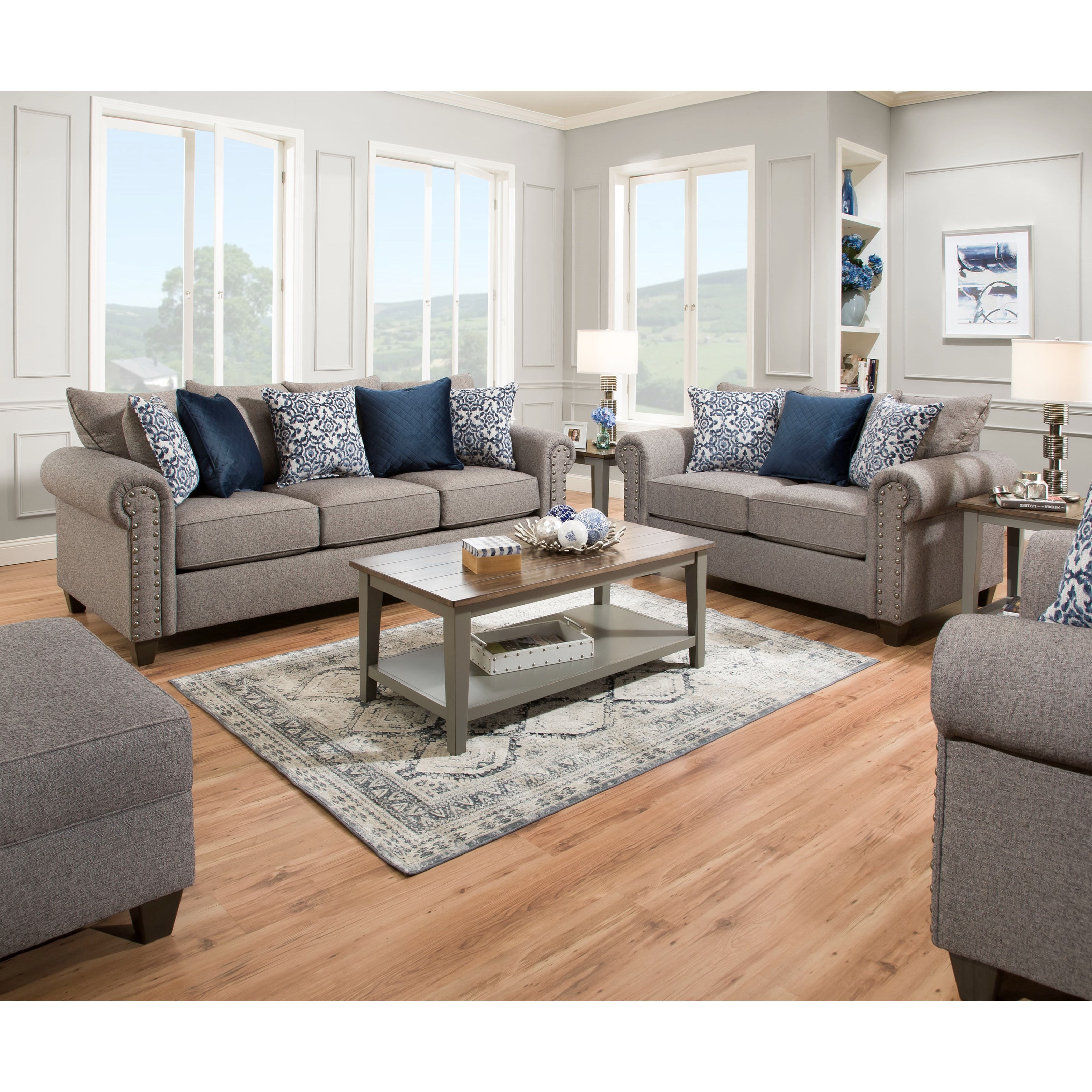 Della Linen Sofa And Loveseat By United 9175br