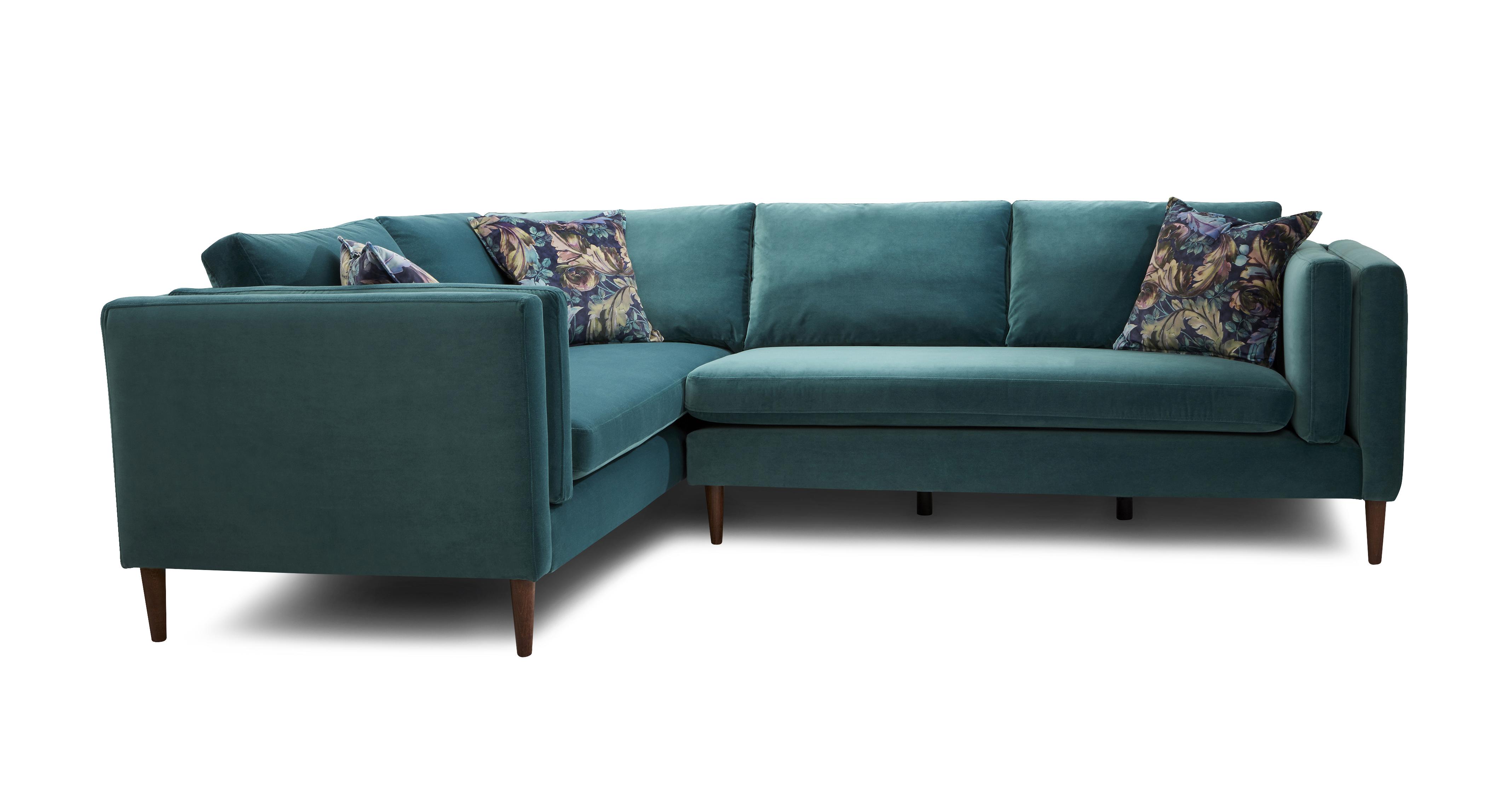 Rockford Soft Velvet Left Hand Corner Sofa In Turquoise Just Sit
