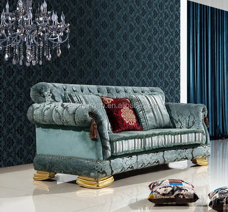 Elegant Classic Mediterranean Ocean Blue Velvet Upholstery Sofa