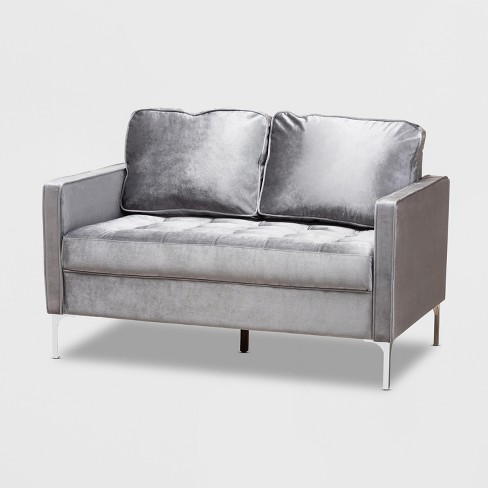 Clara Velvet Fabric Upholstered 2 Seater Loveseat Gray