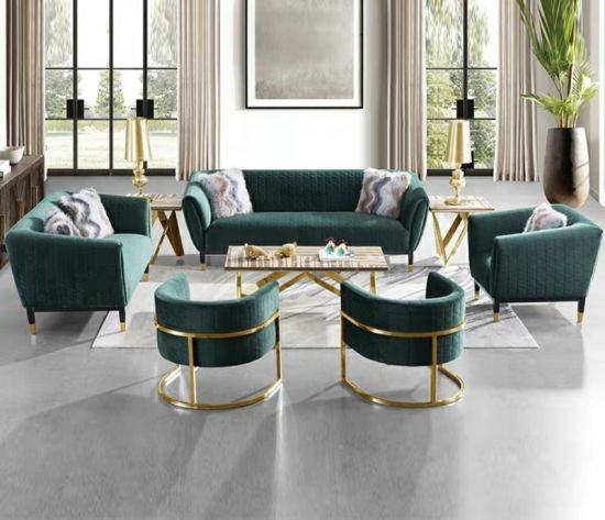 China Luxury Hotel Lobby Seating Furniture Green Velvet Sofa Set