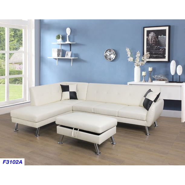 Ram Left Facing Sectional Sofa With Ottoman White Walmart Com