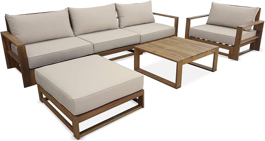 Amazon Com Outdoor Patio Sectional Couch With Cushions Coffee Table Set Metal Faux Wood Garden Outdoor