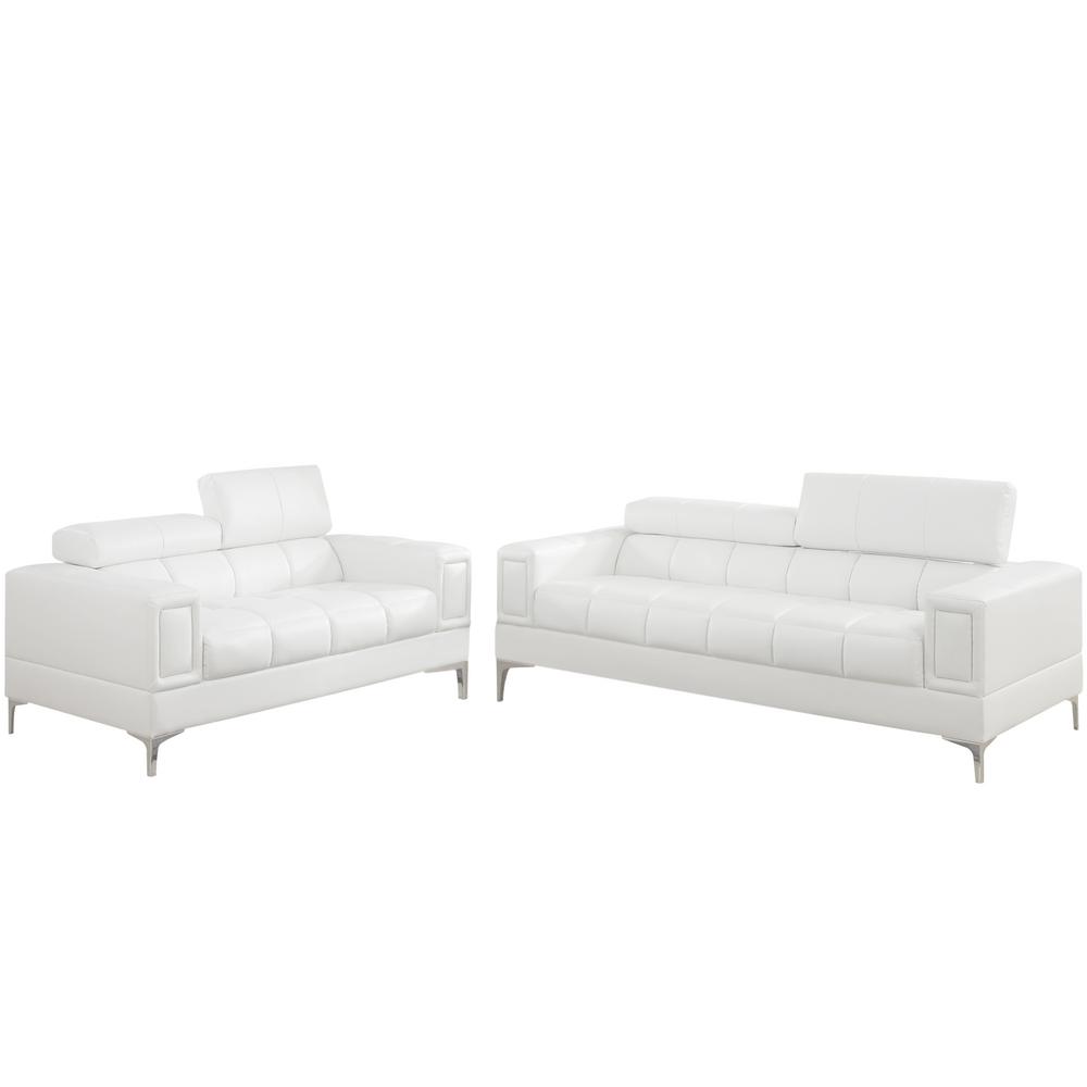 Modern White Black Leatherette Sofa Loveseat Chair Set S7415